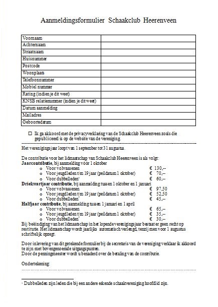- Dubbellid: € 70 per jaar (voor als je al ingeschreven bent bij een schaakbond)
